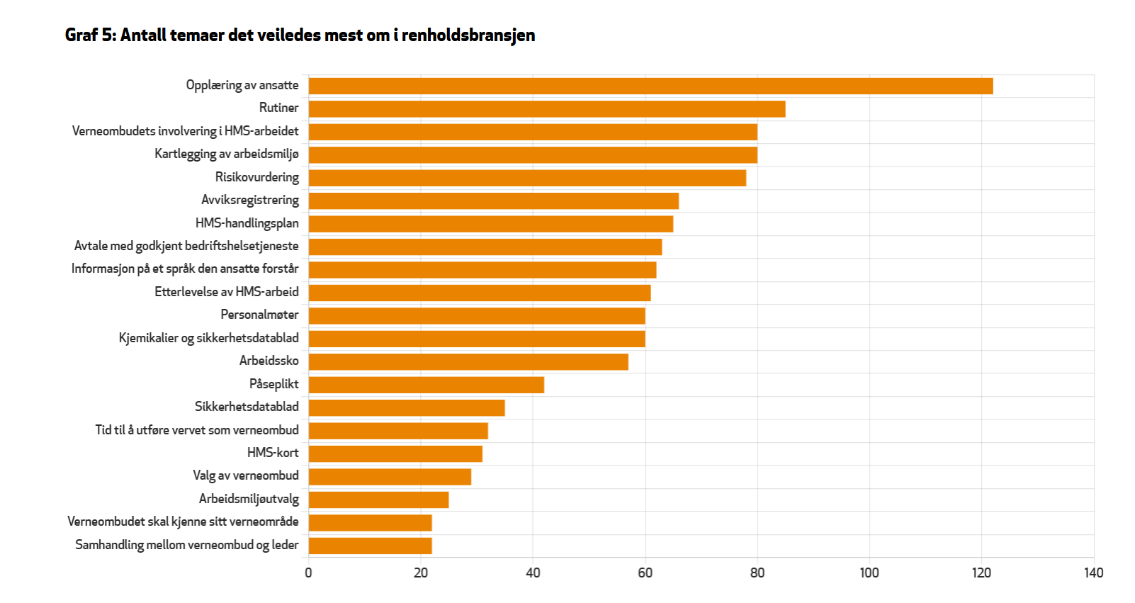 I årsrapporten trekkes det frem at RVO-ene erfarer at HMS-opplæring og oppfølging av renholdere har blitt dårligere de siste årene. Særlig gjelder dette at ansatte mangler grunnleggende kunnskap om faremerking av kjemikalier og forståelse av pH-skalaen. Blant årsakene til dette vises det til at praktisk opplæring i renhold ofte gjennomføres digitalt eller blir nedprioritert av arbeidsgivere.