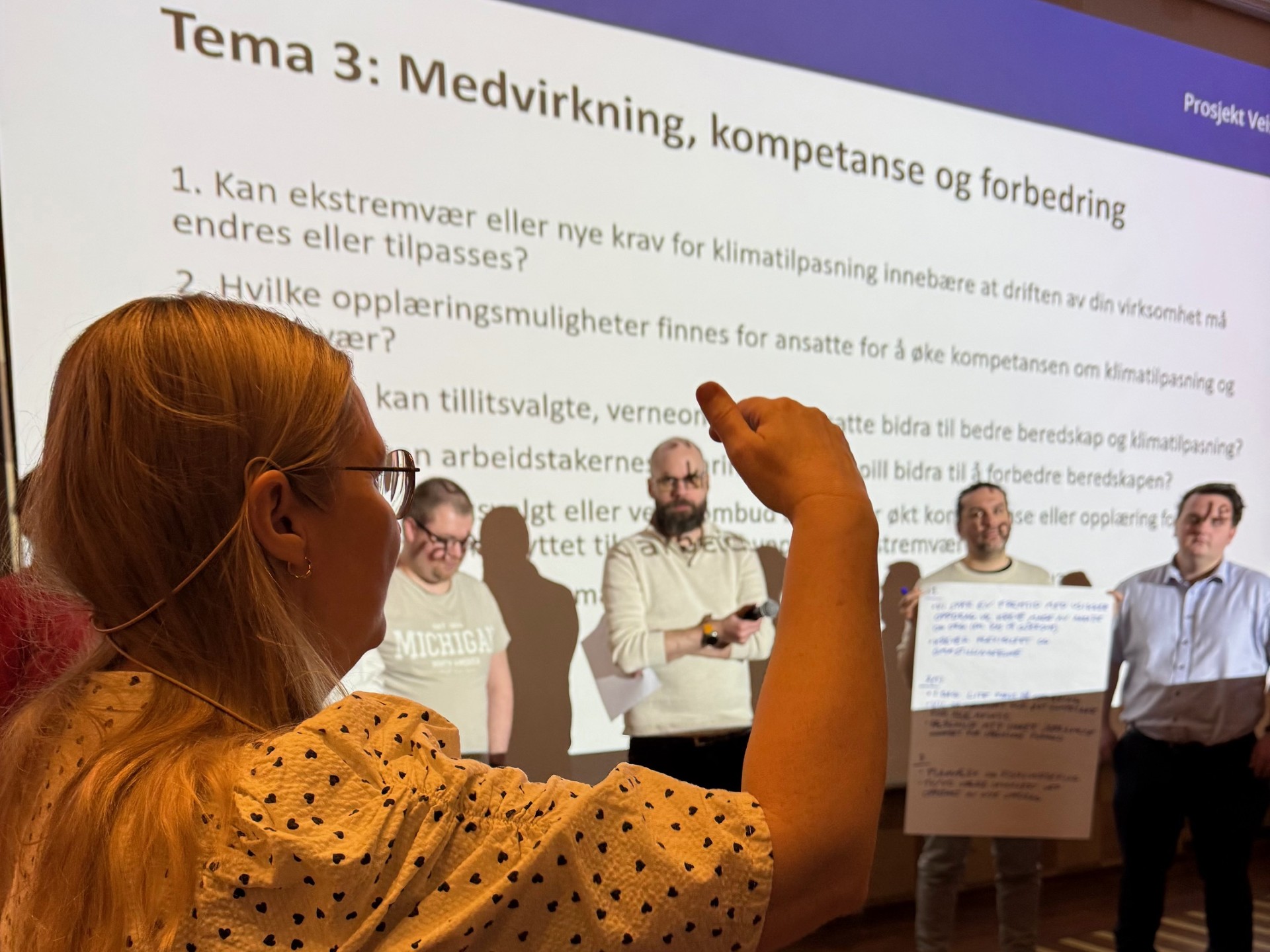 Prosjekt Veiskille besøkte Trondheim for å styrke tillitsvalgtes kompetanse om det grønne skiftet og utfordringer knyttet til ekstremvær. Gjennom innledning, workshop og gruppearbeid fikk deltakerne konkrete verktøy for å håndtere nye krav og risikoer på arbeidsplassen.