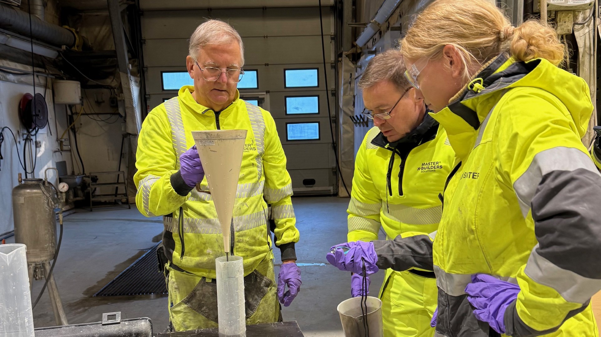 Hva avgangsmassene etter bergindustrien kan brukes til, er et viktig spørsmål i det grønne skiftet. Vi fikk være med SINTEF og Cemonite på testing av injeksjonsmasse.