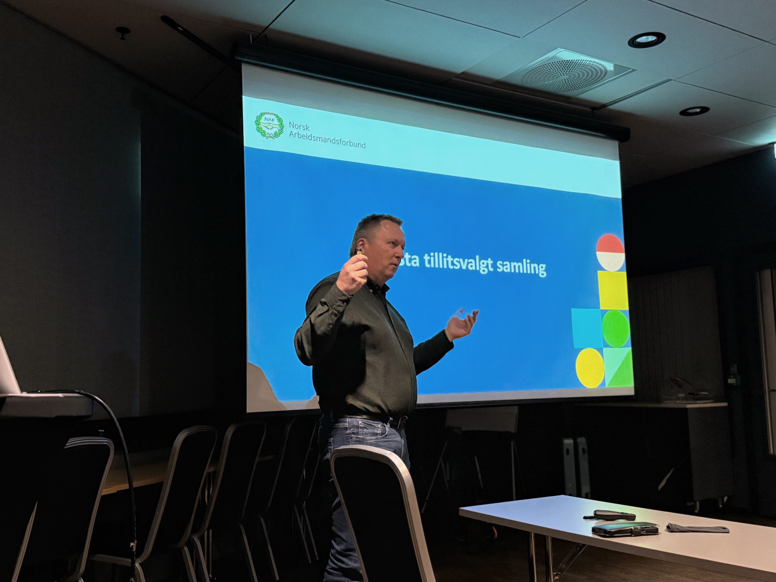 Forbundssekretær Kjell Ivar Slettmoen innleder om tariffoppgjøret.