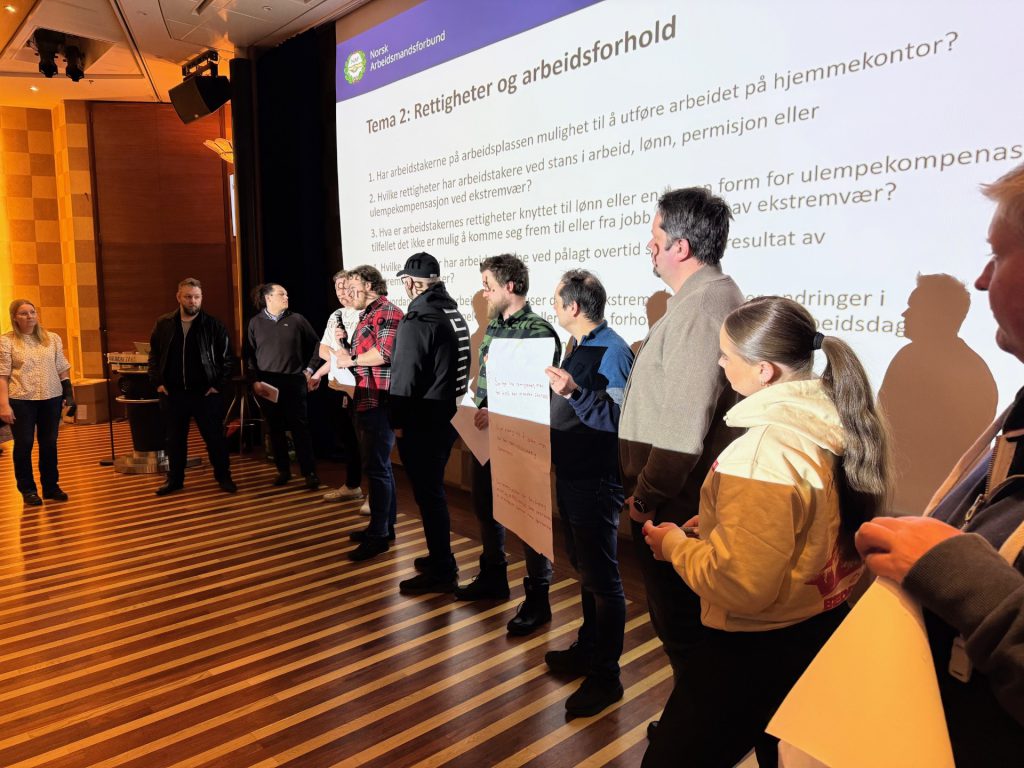 Hun minnet også om at rettferdig omstilling i vaktbransjen krever at arbeidstakere får både utstyr, tid og reelle muligheter til å ivareta egen sikkerhet når været blir mer ekstremt.